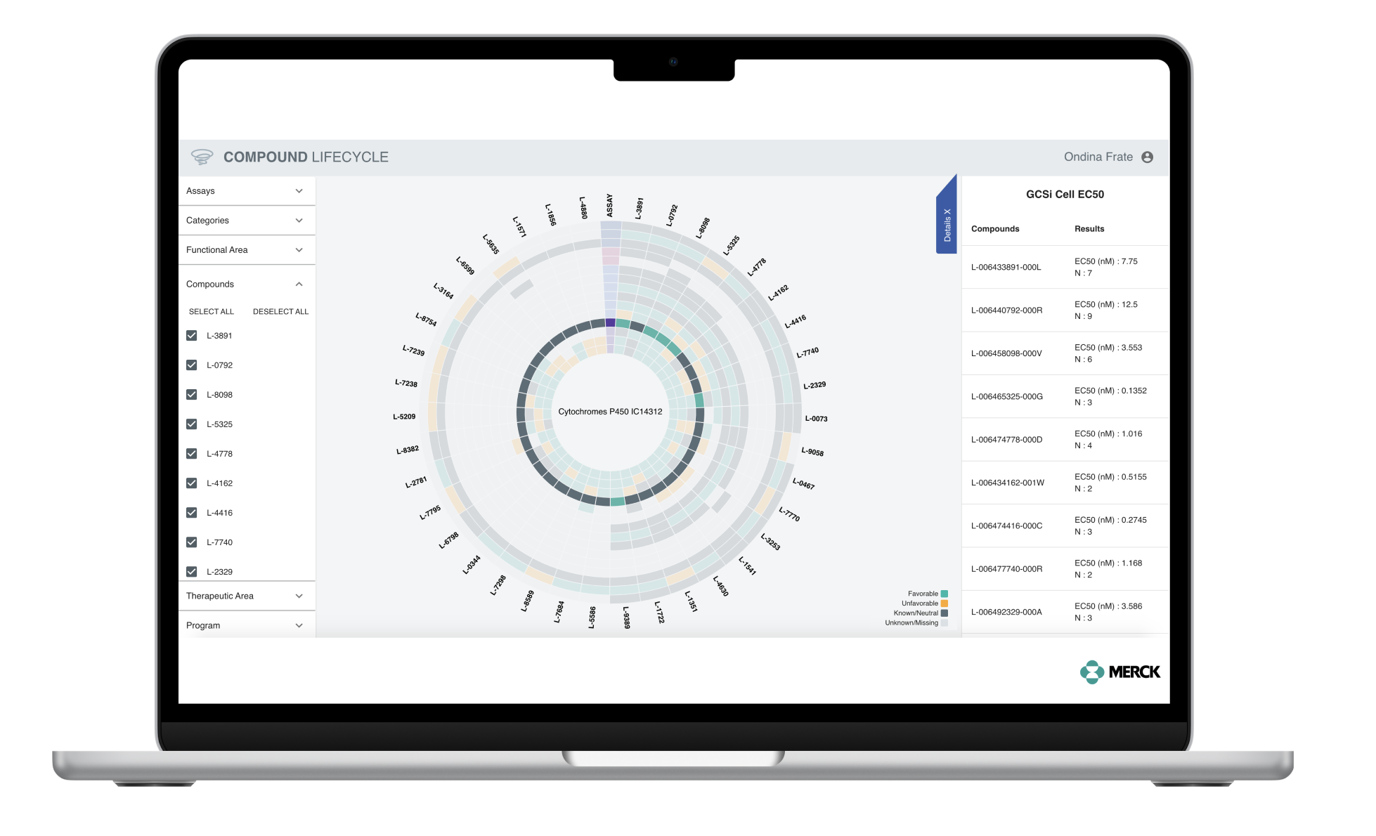 After the first design iterations we faced the issue as a team that Merck’s API had a massive amount of data so we needed to filter the data before visualizing it. Since our users were scientists at Merck we knew they know exactly which compound or assay they need to see. That allowed us to have more specific design options.