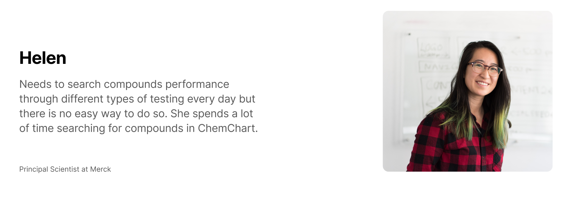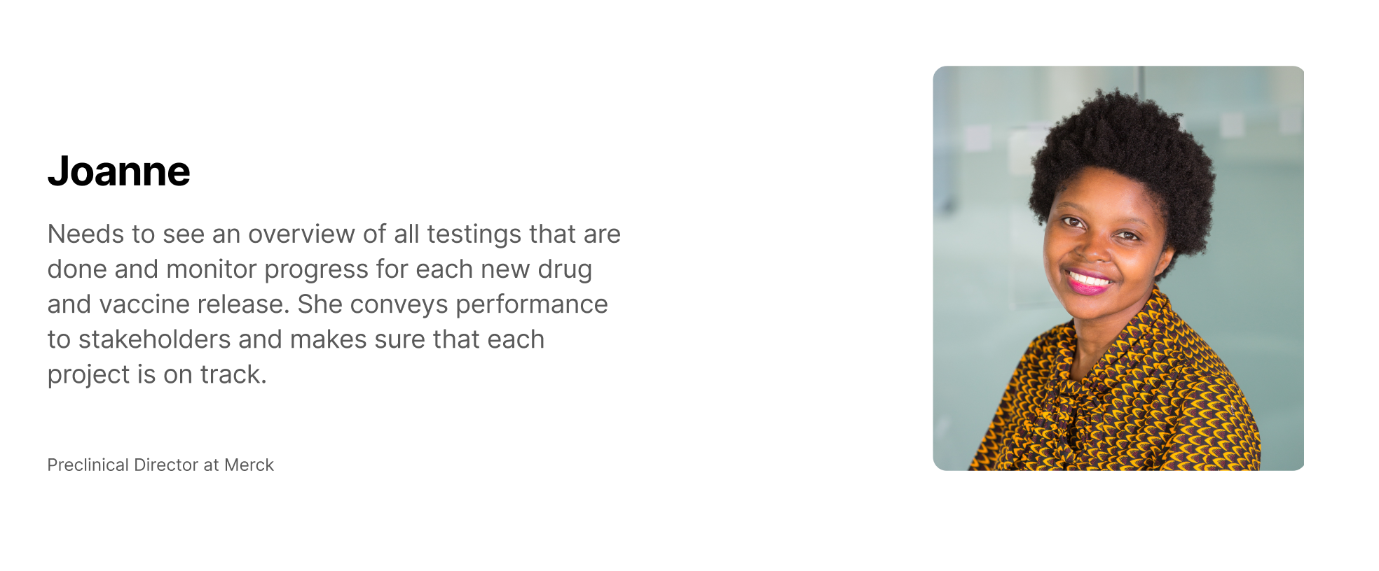 Our users were scientists from Merck, as well as Product Owners and Merck leadership. We were building this tool internally at Merck, so we had the opportunity to interview and talk to more than 100 research scientists to find out how are they working and how could we make their lives easier. We designed these 3 personas so we can incorporate user scientists and business people in these personas.