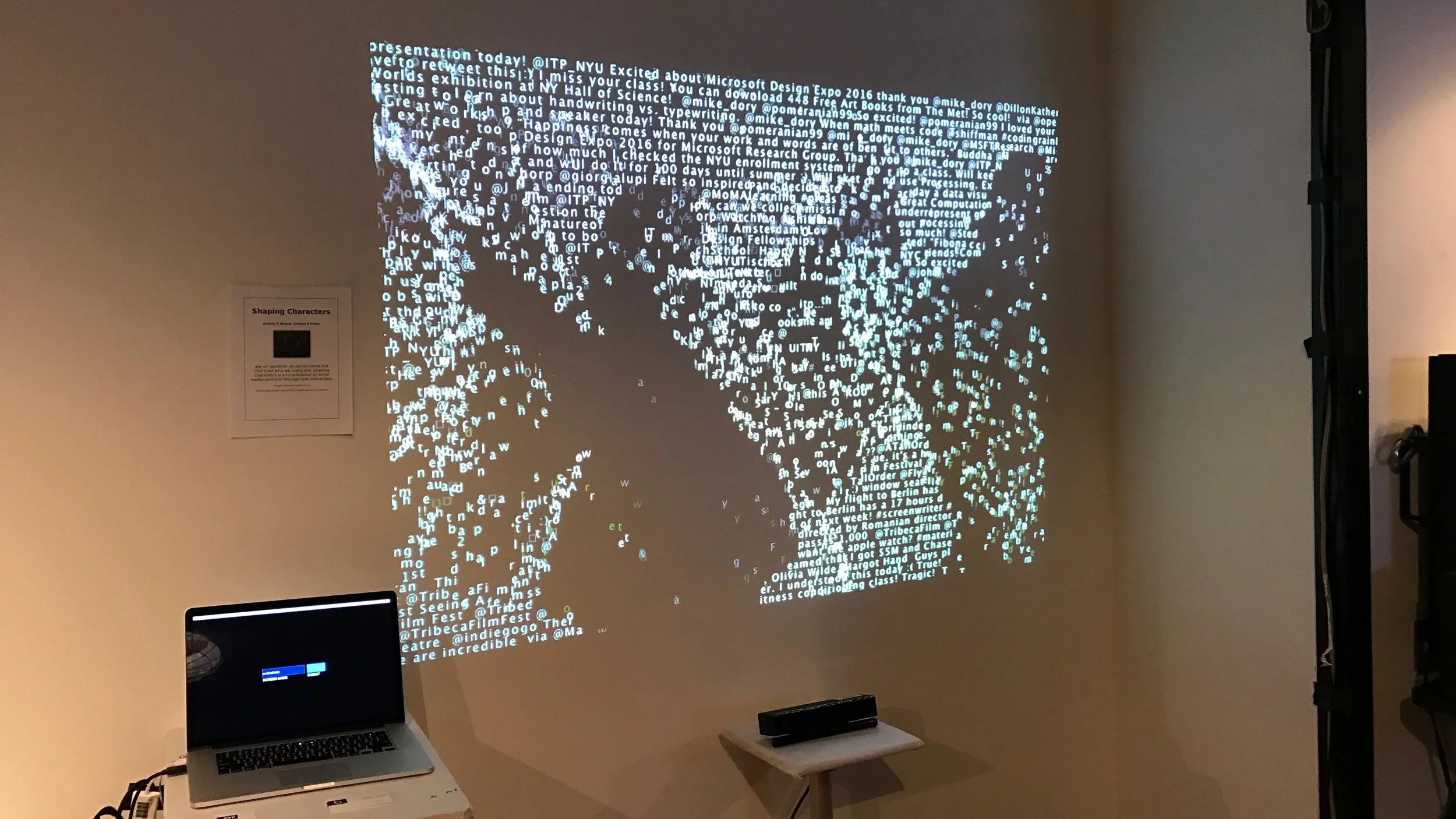 We all 'perform' on social media but that's not who we really are. ‘Shaping Characters’ is an exploration of social media portraits through text interaction. Joakim and I partnered up to do an interactive text generative art that uses Processing and Kinect. We found the spring physics library and we tried it and got a nice effect so we kept it.